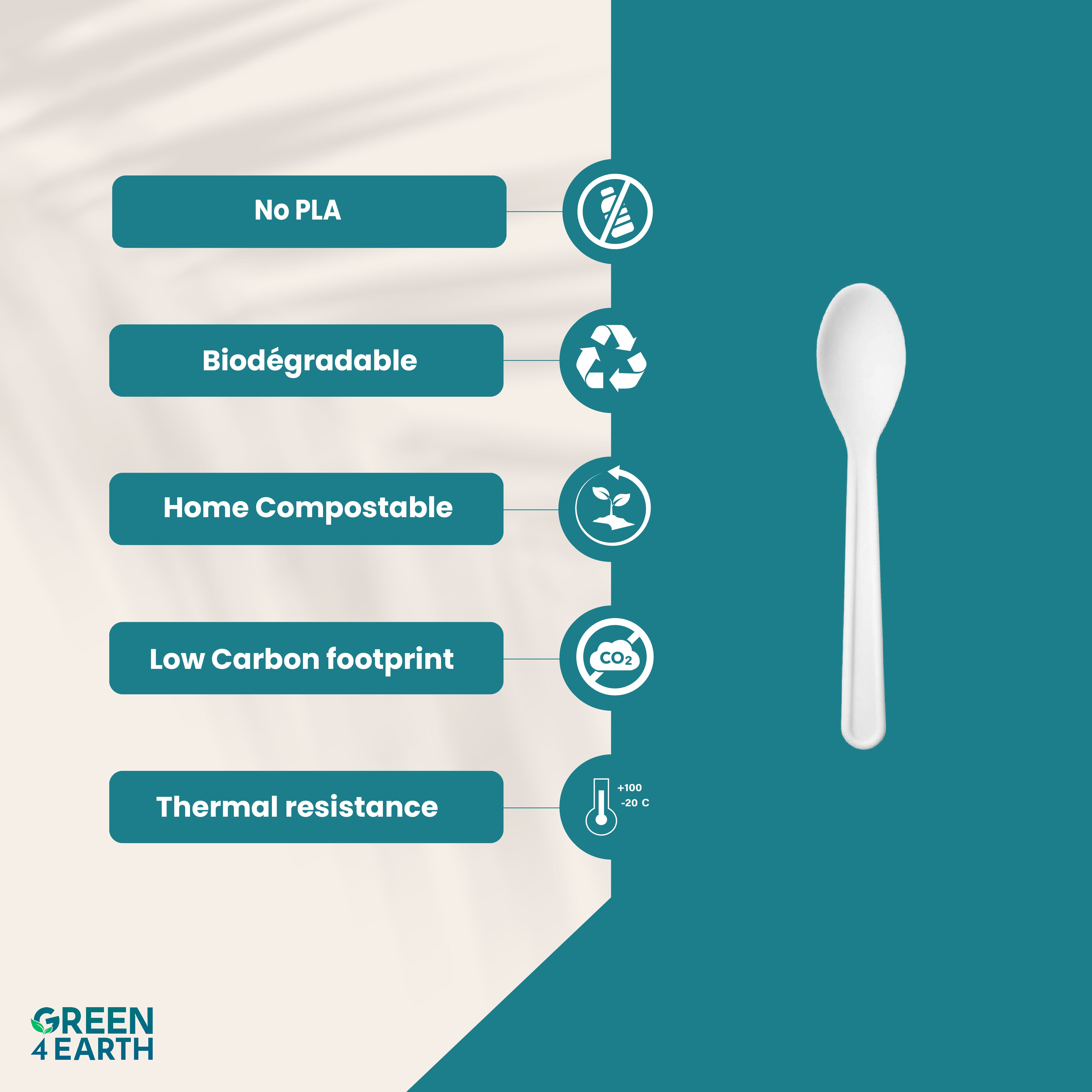 Craquez pour nos couverts chics et durables ! Fabriqués à partir de farine de tapioca, une ressource 100% renouvelable, préparez-vous à transformer vos déjeuners en moments green !