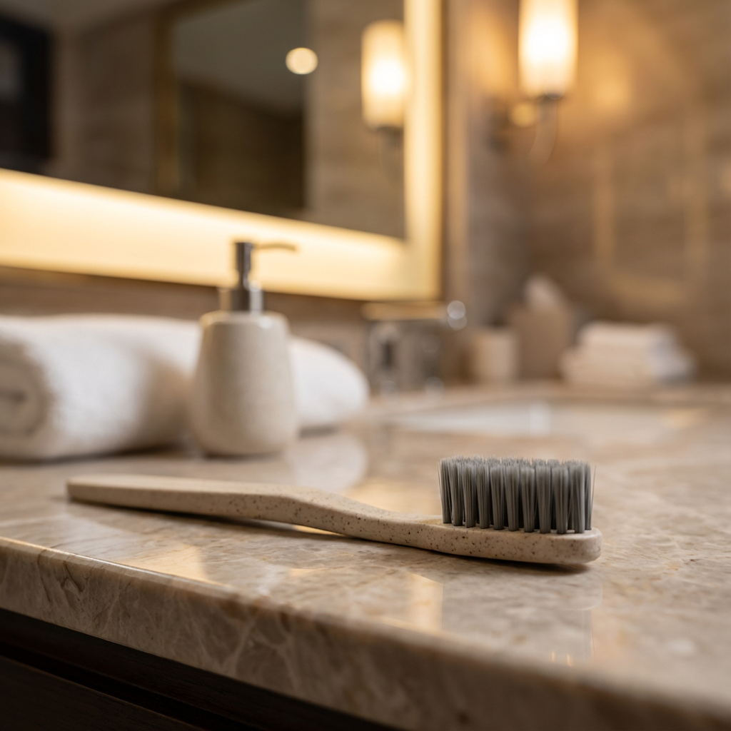 This stylish toothbrush adds an elegant and sustainable touch to your guest amenities. Durable, comfortable and environmentally friendly, it is designed